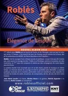 Aujourd’hui Roblès possède une formation sur scène capable de jouer de la douceur et de la dentelle, mais aussi des musiques puissantes et revendicatives.